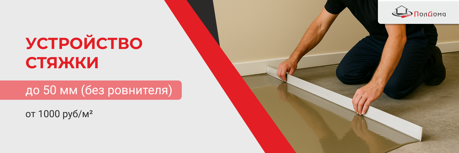 Устройство стяжки до 50 мм без ровнителя — оптимальное решение для квартир, домов и офисов, когда нужно быстро выполнить выравнивание пола при перепадах 5–50 мм без применения финишных самонивелирующих смесей. Такая стяжка до 50 мм подходит для новостроек и ремонта, позволяет скорректировать локальные неровности, усилить основание и подготовить его под ламинат, ПВХ/кварц-винил, линолеум или керамогранит. Метод совместим с системами тёплого пола, помогает убрать скрипы и «гуляющие» зоны, а также скрыть инженерные коммуникации, обеспечивая надёжную плоскость под чистовое покрытие.
